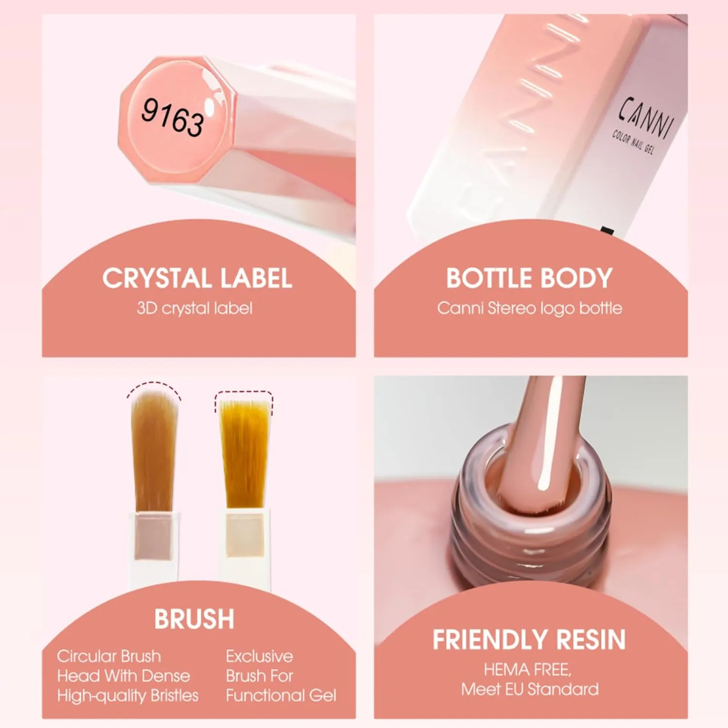 - HEMA Free formula: CANNI gel lakovi su posebno formulirani i ne sadrže HEMA, što obezbeđuje sigurnije i zdravije iskustvo nege noktiju.